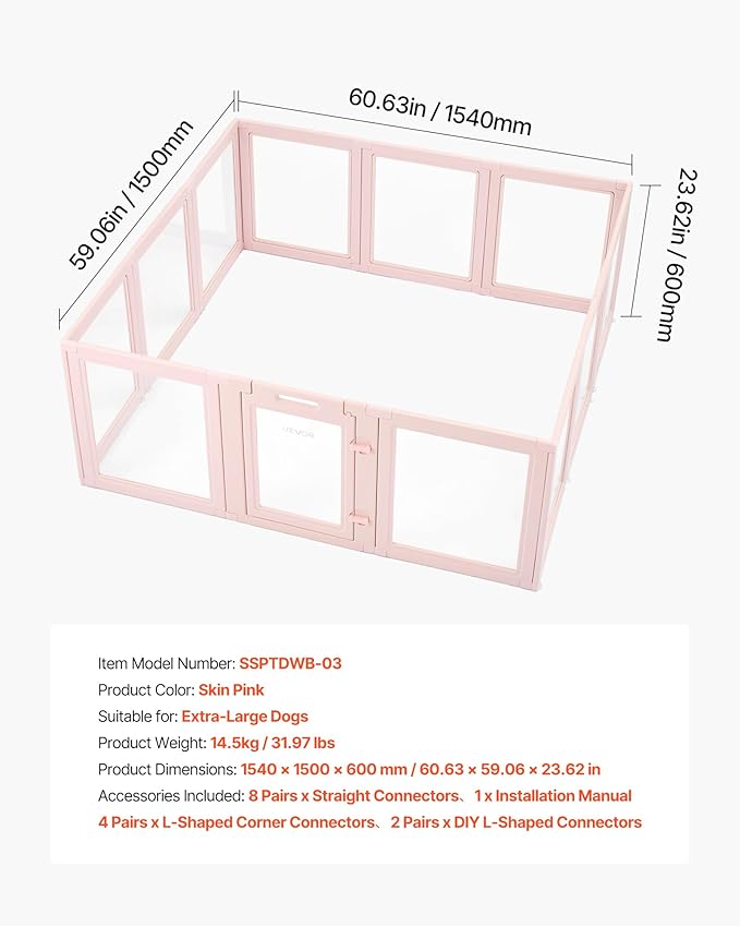 - Transparent Dog Playpen: Made with high-quality PE and PET panels, this transparent dog playpen offers a bright, spacious design. It reduces anxiety for your pet and makes it easier for you to observe them. Easy to clean and prevents pets from getting stuck.