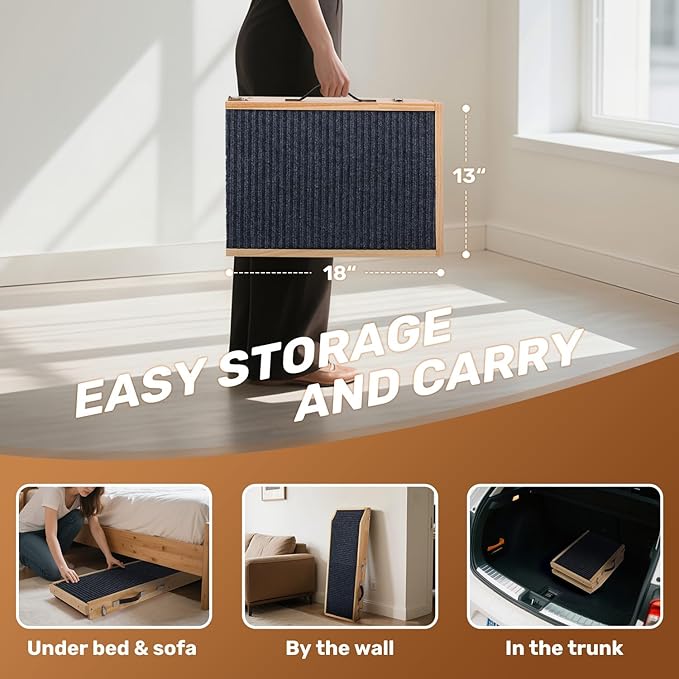 - ✅ Non-Slip Surface – Textured carpet surface offers superior grip to prevent slips and reduce impact on paws and joints, ensuring safe, confident climbs and descents