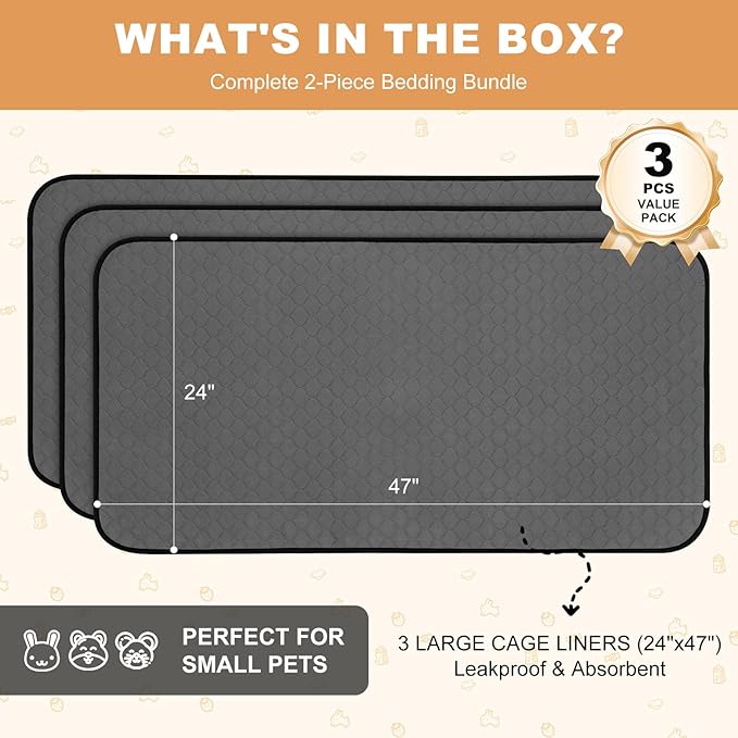- Specially Sized for Small Animals: Dark Gray Guinea Pig liners are more stain resistant for long-term use. These guinea pig bedding pads are not only ideal for guinea pigs but are also suitable for most small pets, such as chinchillas, rabbits, hamsters, ferrets, and hedgehogs