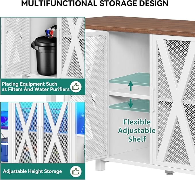 - Storage Efficiency: Maintain order with our fish tank with stand features for fish food, tools, and accessories. Adjustable shelves cater to items of all sizes, keeping your aquarium essentials in one place