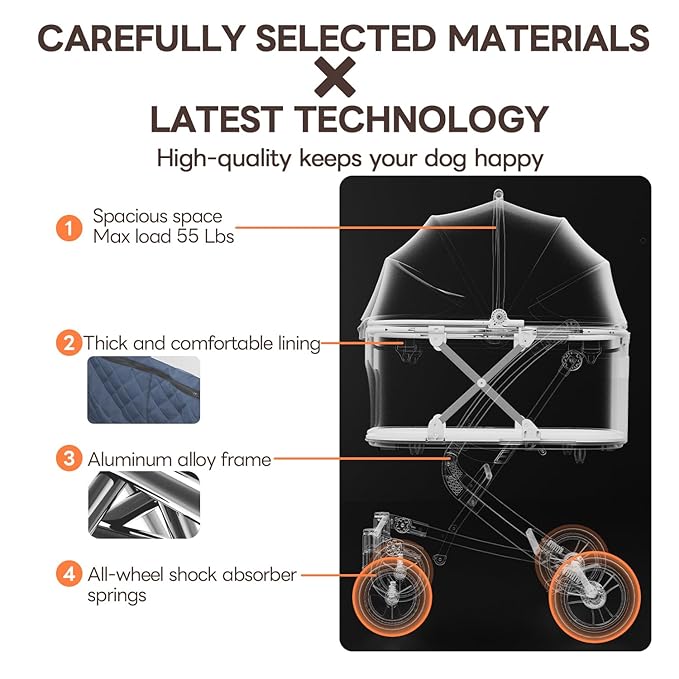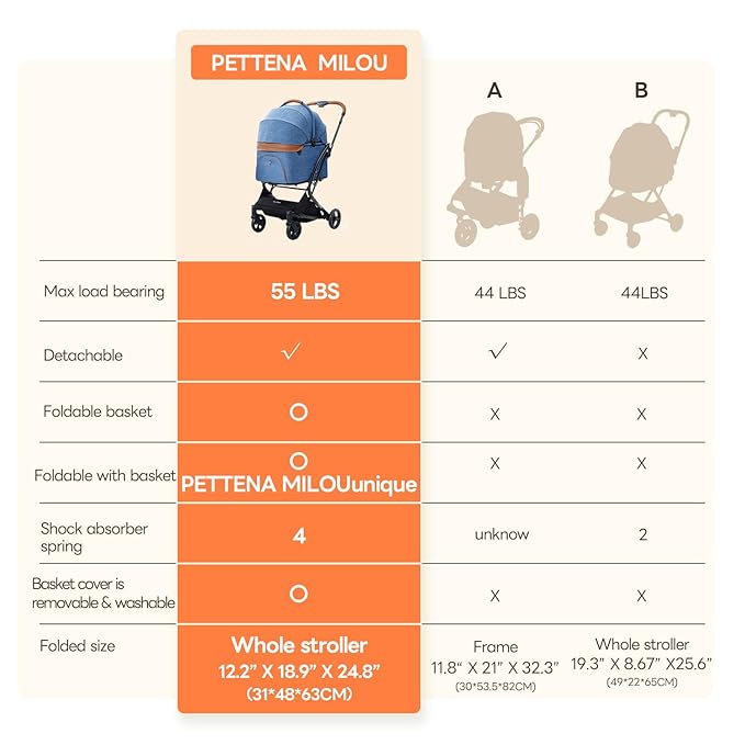- 🐈【Max Load Capacity 55 Lbs, Large Interior Space】The PETTENA pet stroller MILOU has a load-bearing capacity of 55lb(25kg) and a spacious interior, making it ideal for owners of small-sized dog, such as French Bulldog, Poodle, Dachshund, Beagle, etc.