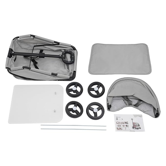 - 🐕Wide Application: More than just a pet stroller—it’s a practical helper for your everyday needs! Use it as a compact shopping cart for groceries, packages, or market runs. The spacious interior and additional storage bag let you carry pet supplies, personal items, or small parcels, adding convenience to outings and errands